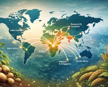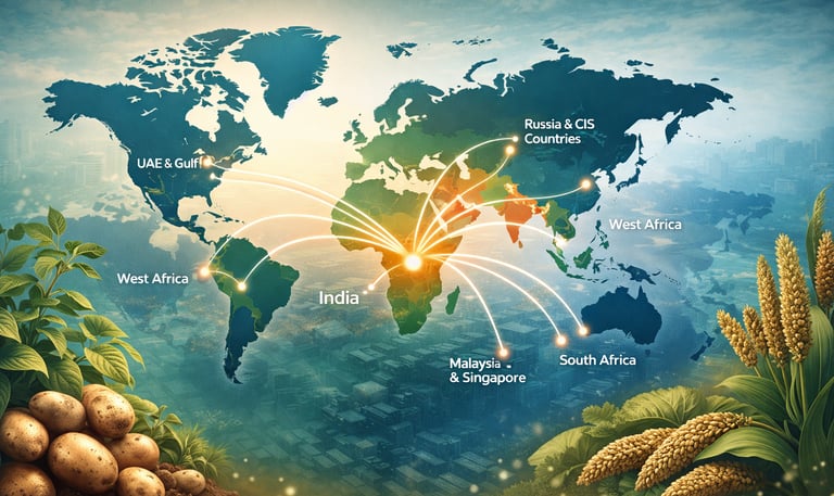 Export of produce as well as products to importing countries like UAE, Gulf Countries, West African Countries, Mexico, Russia, CIS - Countries, South Africa, Malaysia, Singapore, Australia, New Zealand , Canada and USA.